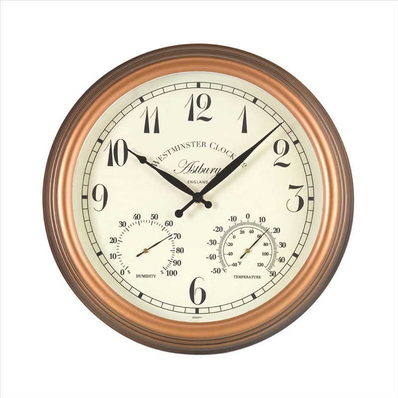 Weather resistant with Centigrade & Fahrenheit reading and includes hygrometer.