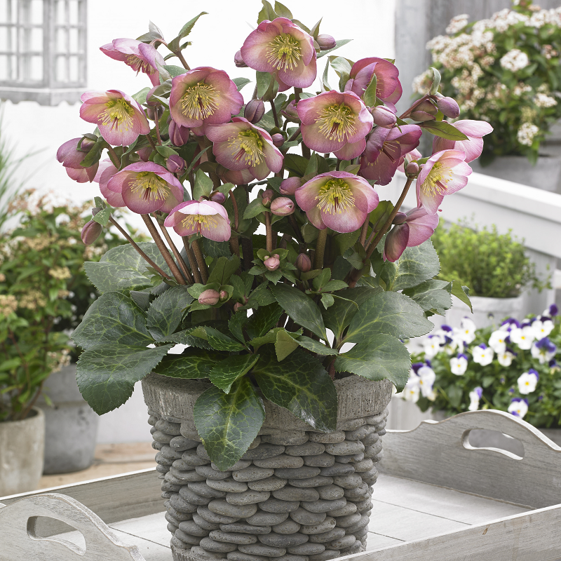 The delightful marbled foliage is the perfect backdrop to the soft pink flowers, blooming from late winter and attracting bees to your garden. It is hardy and foliage remains all year.