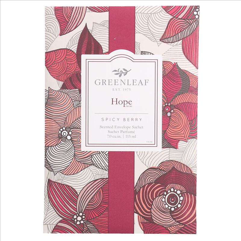 The rosy aura of promise and positivity, Hope lifts the senses in a boosting formulation of exuberant fruits, warming spice, pure sweet vanilla. The envelope sachet has been Greenleaf signature product for over 35 years! Our sachets use specially blended oils that are encapsulated for maximum strength and product life. Add a touch of fragrance anywhere by slipping sachets into closets, drawers, gifts, cars, and more.