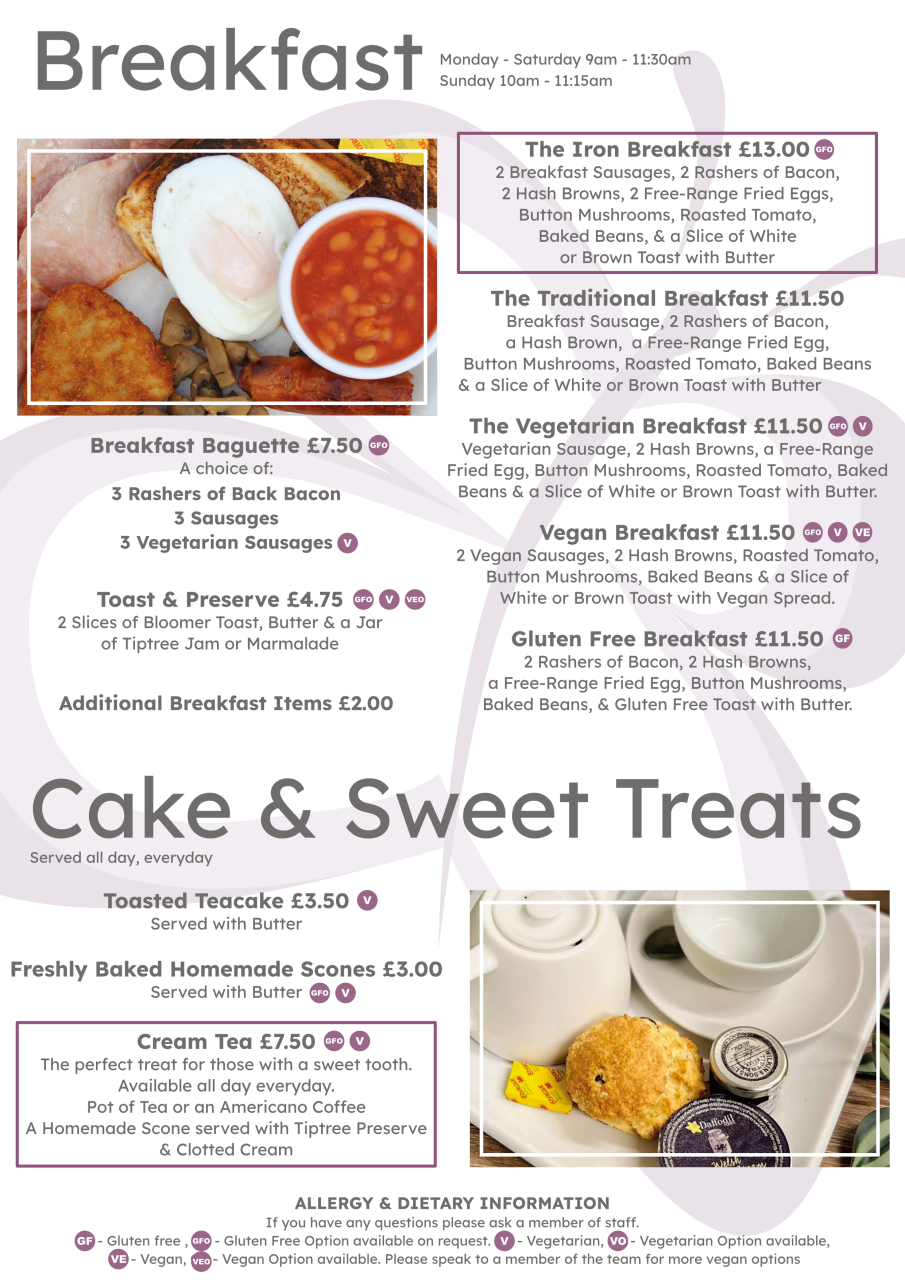 If you are looking for a sweet treat, we also serve cakes and cream tea.